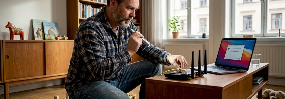 Vi hjälper dig säkra ditt hemnätverk med beprövade metoder som faktiskt fungerar i praktiken. Om du upplever problem kan vår guide för att felsöka WiFi-problem hjälpa dig identifiera orsaken, men för komplex säkerhetskonfiguration rekommenderar vi professionell hjälp.